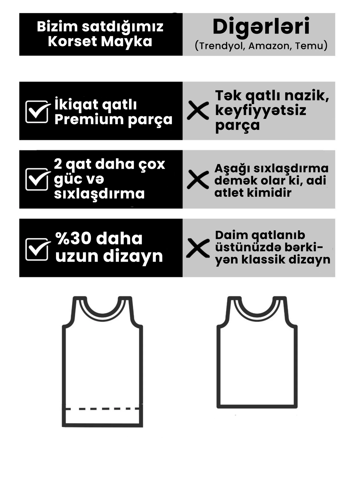 Sallanan bədəni ən effektiv şəkildə toparlayır. Jinekomasti problemi, sinə bölgəsinin görünməsi, bel ətrafındakı yağlanma və qarın hissəsini çox təsirli şəkildə gizlədir. Gündəlik istifadədə nəzərəçarpacaq dərəcədə incəlmə və bərkimiş görünüş təmin edir.